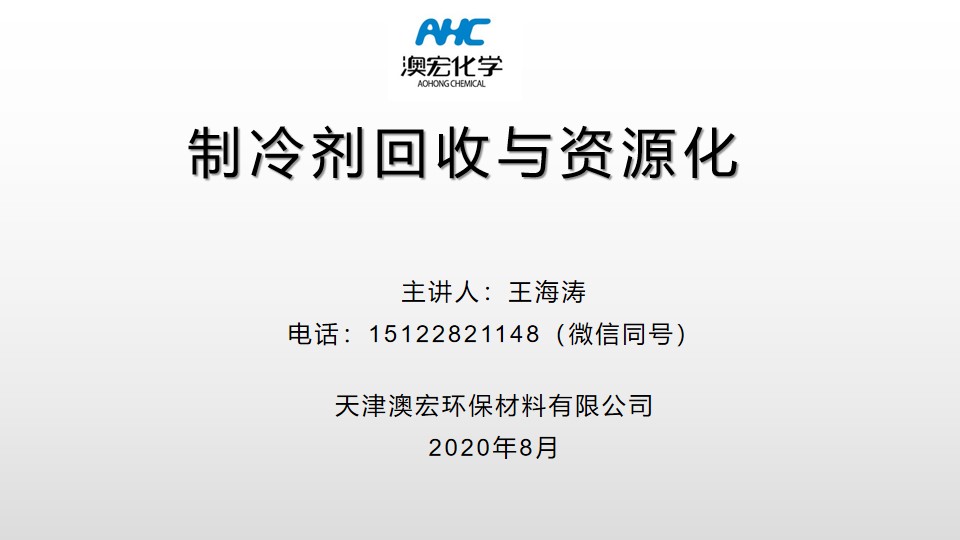 2020年8月19日重慶制冷展快訊-—天津澳宏王海濤總經(jīng)理為您深入解讀“制冷劑的回收與資源化”